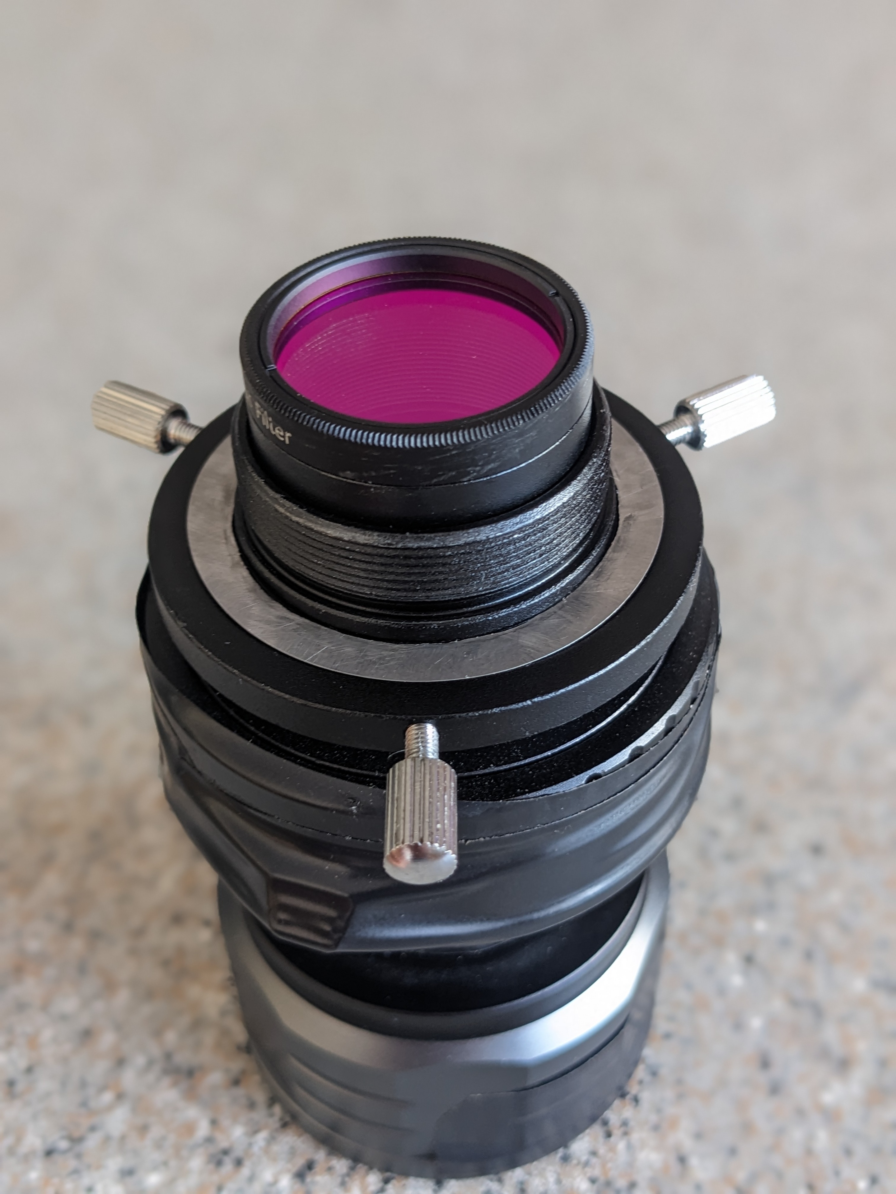 The third part is the outer flange. This screws into the focuser and together they provide a small channel in which the lip on the focus ring rides. If you look carefully, you can see a shoulder on the flange just below the threads. The height of this shoulder determines the size of the channel in which the lip will travel.